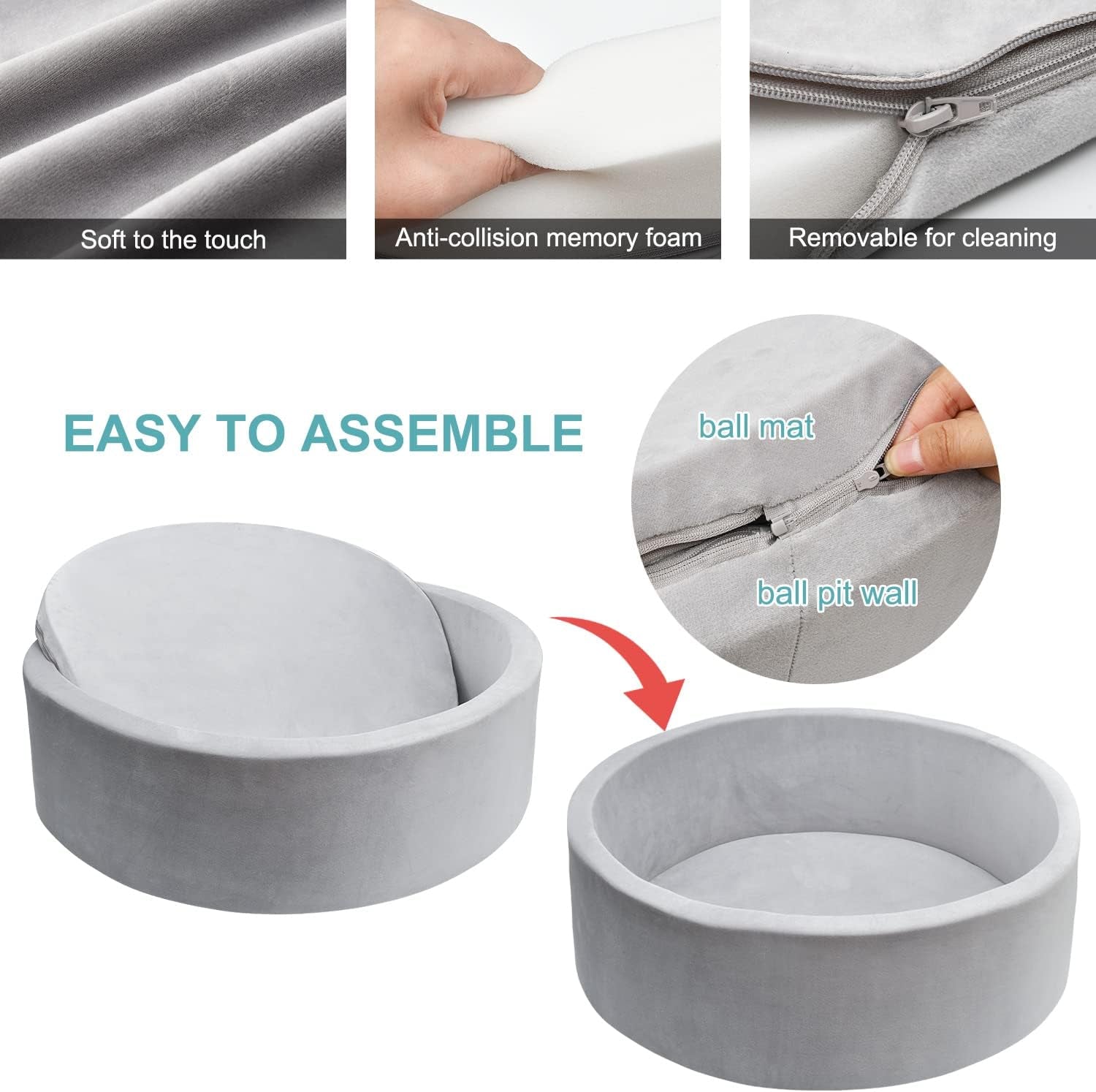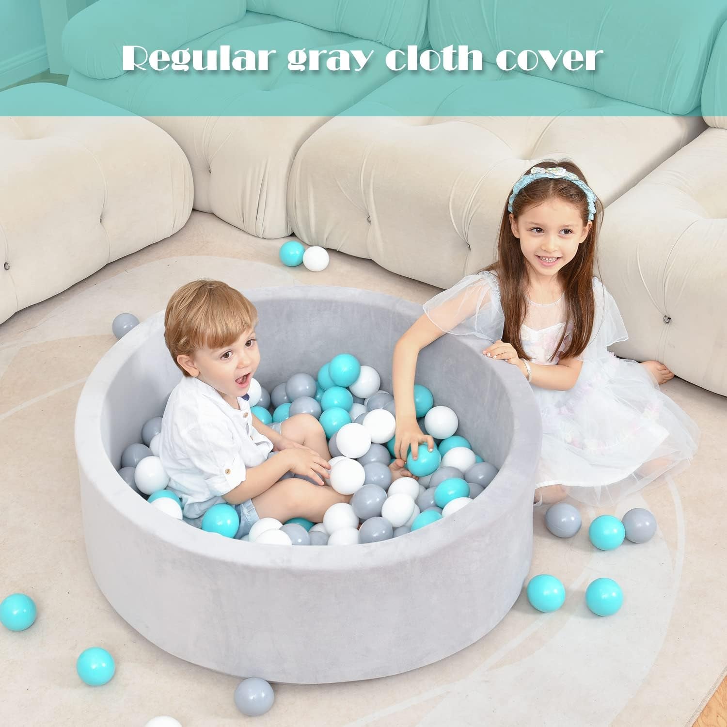 Airwitty Ball Pit with 2Pcs Covers- Fun Santa, Sleigh, Coming down Chimney & Leaving Presents. Soft, Thick Foam, Machine Washable (Balls Not Included) , Anti-Wrinkle for Babies(Gray + Blue Christmas)